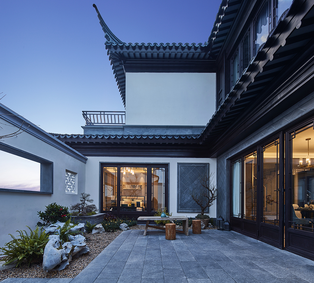 其中,精装中式叠院以上庭下院、两两相叠的创新形制,满足中国人对于庭院生活的向往。下叠多重庭院、阳光地下室,有天有地,悦享闲情院落生活;上叠便捷电梯、超大面宽、首创空中庭院设计,楼上亦能养花饲草,悠享更多阳光绿意。